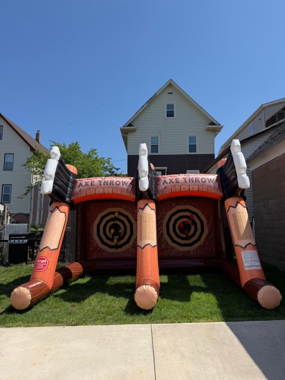 Bring the thrill of axe throwing to your event with our 2-Player Axe Throwing game! This fun game attraction lets two players compete side-by-side, aiming for the target and scoring points in a friendly challenge everyone will enjoy.