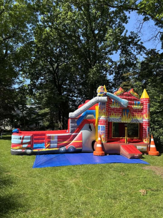 Fire Truck Combo with Dual Lane Slide is the newest and hottest item on the market! This bounce house is perfect for any Fire Truck themed party or event. The Fire Truck Combo with Dual Lane Slide features 2 slides, a bouncy area, climbing wall, and a basketball hoop. Your guests will have a blast sliding down the fire truck themed slides and bouncing around in the bouncy area. The Fire Truck Combo with Dual Lane Slide is sure to be a hit at any party or event! Order yours today!