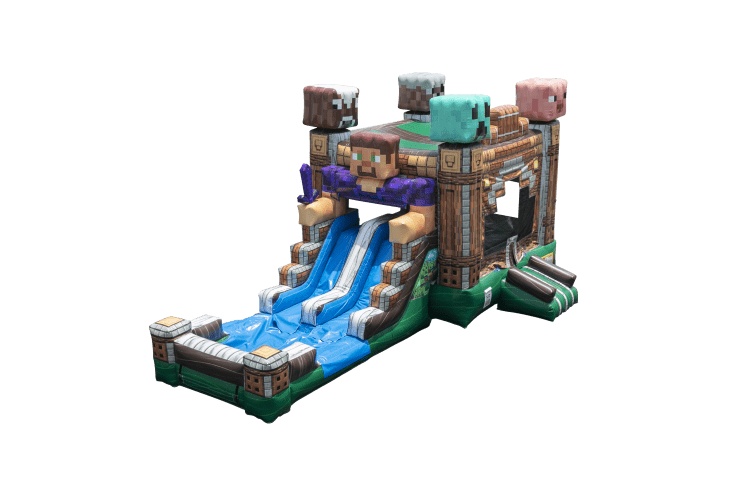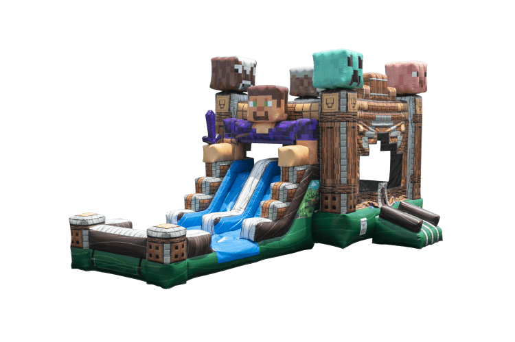 Bring your party to life with our Minecraft Dual Lane Combo Slide! This exciting inflatable features a bounce area, climbing wall, basketball hoop, and two slides for double the fun. Perfect for any Minecraft-themed party or event, it’s sure to keep kids entertained for hours. Reserve the Minecraft Dual Lane Combo Slide today and make your celebration unforgettable!